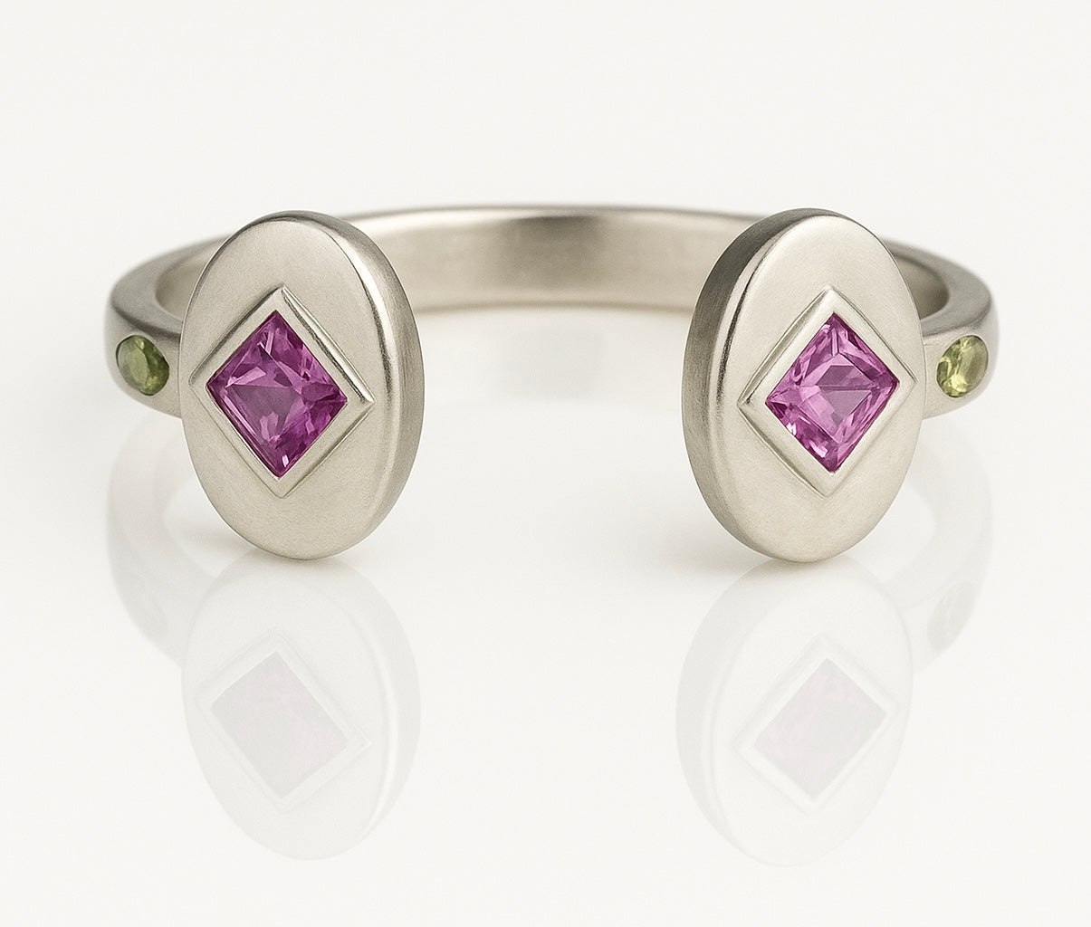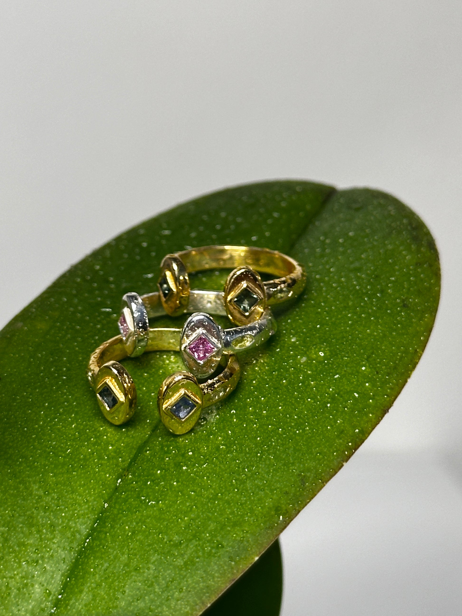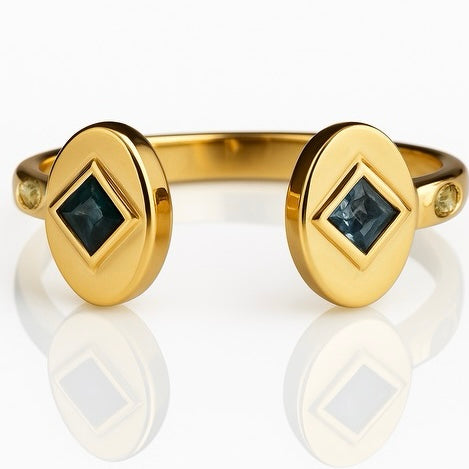 Princess cut natural multicolor sapphire & marquise peridot in Sterling Silver & genuine 14k gold finishes. Adjustable size but starts around a ring 4! Designed, sourced & handcrafted in Los Angeles.